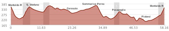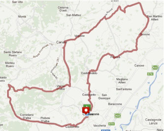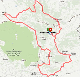 Eine weiter Tour führt auf 60 Km durch Montaldo Roero, Monteu Roero, Santo Stefano, Monticello und Santa Vittoria d’Alba führt.